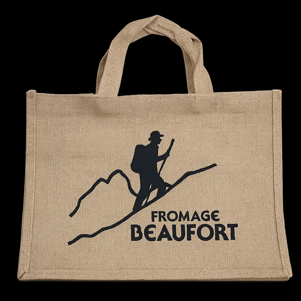 Small jute bag with the “Beaufort Cheese” logo.